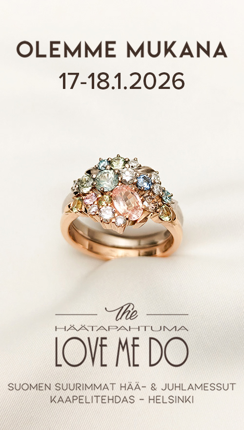 Olemme mukana Love Me Do häätapahtumassa Kaapelitehtaalla lauantaina 17-18.1.2026. Tervetuloa tapaamaan meitä osastolle B8. Myymälämme on suljettu tapahtuman ajan.